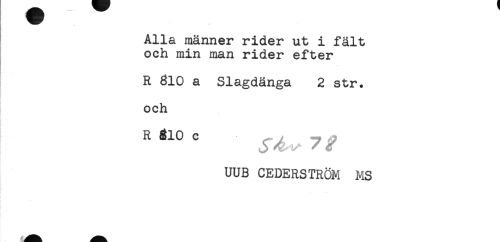 //// Alla männer rider ut i fält //// och min man rider efter //// R 810 a Slagdänga 2 str. //// och //// UUB CEDERSIRÖM MS ////