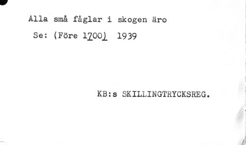 //// Alla små fåglar i skogen äro ! //// Se: (Före 1^00j. 1939 //// ? //// i //// ! //// } //// L //// ! //// ^ //// : //// t //// i //// t //// ! //// i //// KB:s SKILLINGTRYCKSREG. //// ! //// " ' - - : t //// t //// r ////