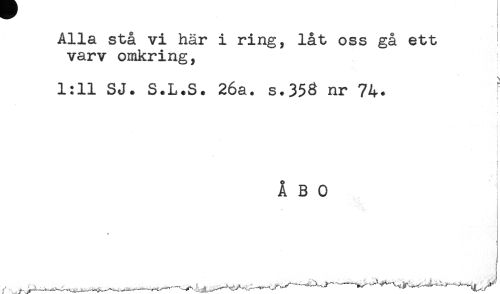 //// Alla stå vi här i ring, låt oss gå ett //// varv omkring, //// 1:11 SJ. S.L.S. 26a. s.353 nr 74. //// t //// i //// < //// ) //// i //// - I //// ÅBO //// * ////