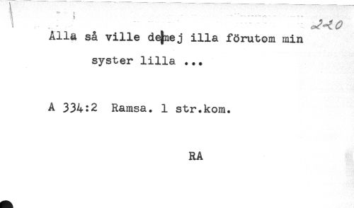 //// ^^ //// Alla så ville de^ej illa förutom min //// syster lilla ... //// A 334:2 Ramsa. 1 str.kom. //// RA ////