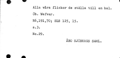 //// Alla våra flickor de ställa till en bal. //// Öb. We fvar. //// - //// ^ R6,191,70; SLS 125, 15. //// s.3. //// No.29. //// ÅBO SJÖBERGS SAML. //// f - ^ . ////