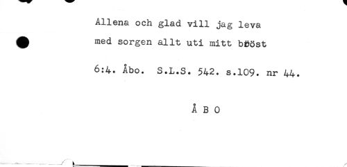 //// Allena och glad vill jag leva //// ^ med sorgen allt uti mitt bööst //// 6:4. Åbo. S.L.S. 542. s.109. nr 44. //// ÅBO //// ---- - - - ' t___ ////