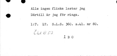 //// Alls ingen flicka lastar jag //// ^ Därtill är jag för ringa. //// 1:7. LT. S.L.S. 360. s.41. nr 80. //// ÅBO //// . //// t. . .< ^^Jat^A+iB^h** .4.-'.^ . . . < 4L i^* t^.*' < uti'. - .t ,* * ////