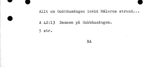//// Allt om Gubbhusängen invid Målarns strand... //// A 42:13 Dammen på Gubbhusängen. //// 5 str. //// <* //// RA ////