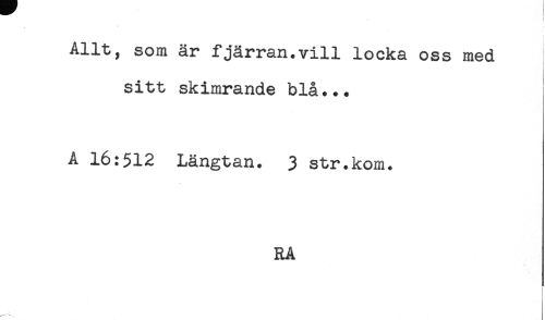 //// Allt, som är fjärran.vill locka oss med //// sitt skimrande blå... //// A 16:512 Längtan. 3 str.kom. //// RA ////