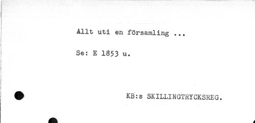 //// - - - ^ . - ... . //// Allt uti en församling ... //// Se: E 1853 u. //// i //// ! //// t //// # KB:s SKILLINGTRYCKSREG. ////