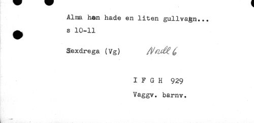 //// Alma han hade en liten gullvagn... //// ^ s 10-11 //// Sexdrega (Vg) //// I F G H 929 //// Vaggv. barnv. //// ^ ... ////
