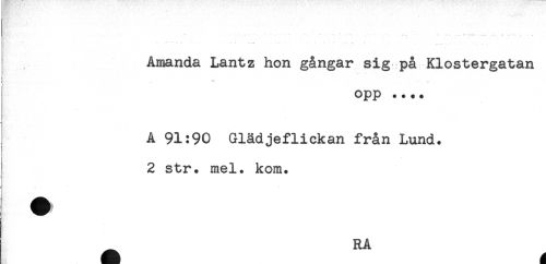 //// ' f. * * ' ' * ' ' ** ***' ***- " " - . . f- ..-. -. . .. ^ //// Amanda Lantz hon gångar sig på Klostergatan //// ! Opp .... //// A 91:90 Glädjeflickan från Lund. //// i //// : //// 2 str. mel. kom. ////