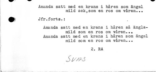 //// AMACRAA<ULC3. g?OL U U iMSSUL CAA A.A <3,AAt3 JL JLlct A Cii iEHL/Hi //// mild ack,som en ros om våren... //// * //// r //// i ^ //// ^ Jfr.forts.: //// Amanda satt med en krans i håren så ängla- //// mild som en ros om våren... //// Amanda satt med en krans i håren som ängel //// mild som en ros om våren... //// ! 2. RA //// L - _ , . . _ ////