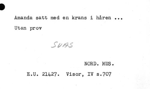 //// Amanda satt med en krans i håren ... //// Utan prov //// NORD. MUS. //// E.U. 21427. Visor, IV s.707 ////