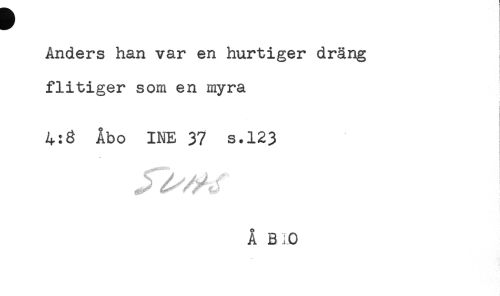 //// Anders han var en hurtiger dräng //// flitiger som en myra //// ! //// ! //// 4:8 Åbo INE 37 s.123 //// Å B,0 ////
