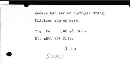 //// Anders han var en hurtiger dräng, //// Flitiger som en myra. //// 7:4 PA INE 46 s.2. //// : //// Ett sått att fria. //// 1 //// ! ÅBO //// t //// * ^ ^ J ////