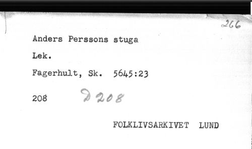 //// TT - //// i //// Anders Perssons stuga //// Lek. //// Fagerhult, Sk. $645:23 //// 203 //// . //// FOLKLIVSARKIVET LUND //// c ////