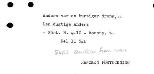 //// Anders var en hurtiger dreng,.. //// Den dugtige Anders //// - Pört. N. 4.10 - konstp. t. //// Del II 641 //// RANCKEN FÖRTECKNING ////