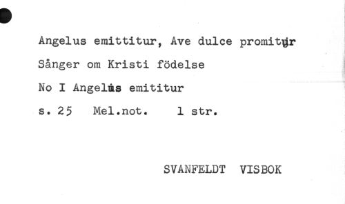 //// Angelus emittitur, Ave dulce promit$r //// i //// t //// Sånger om Kristi födelse //// i //// i //// No I Ängelns emititur //// s. 2 5 Mel.not. 1 str. //// SVANFELDT VISBOK ////