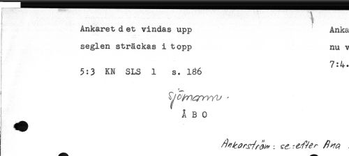 //// Ankaret d et vindas upp ' Anka //// seglen sträckas i topp nu v //// t - //// 7:4* //// 5:3 KN SLS 1 s. 136 //// ÅBO ////