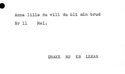 //// Anna lilla du vill du bli min brud //// Nr 11 Mel. //// DRAKE MS KB LEKAR ////