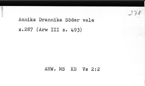 //// Annika Drannika Söder vale //// i //// s.287 (Arw III s. 493) //// i //// ) //// i //// i //// < //// t //// ARW. MS KB Vs 2:2 //// t //// c //// * j ////
