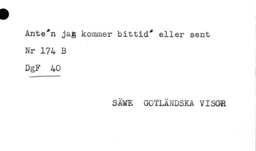 //// Ante*n jag kommer bittid^* eller sent //// Nr 174 B //// DgF 40 //// i //// < //// SÄWE GOTLÄNDSKA VISOR ////