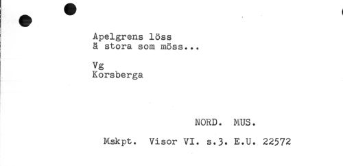//// Apelgrens löss //// ä stora som möss... //// Vg //// Korsberga //// NORD. MUS. //// Mskpt. Visor VI. s.3. E.U. 22572 ////