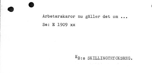 //// Arbetarskaror nu gäller det om ... //// Se: E 1909 xx //// E //// KB:s SKILLINGTRYCKSREG. //// t * - ; . ////
