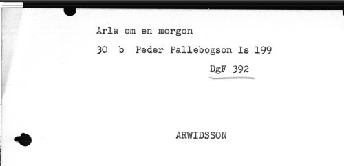 //// Arla om en morgon //// 30 b Peder Pallebogson Is 199 //// DgF 392 //// B- //// i! //// i //// f //// ! //// ^ ARWIDSSON //// Hr ////