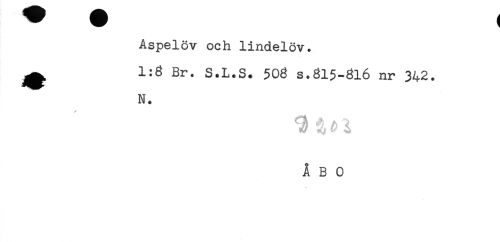 //// Aspelöv och lindelöv. //// ^ 1:8 Br. S.L.S. 508 s.815-816 nr 342. //// N. //// ÅBO ////