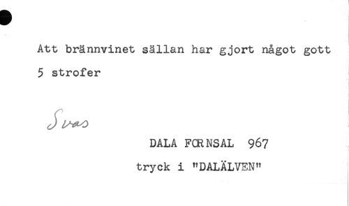 //// Att brännvinet sällan har gjort något gott //// 5 strofer //// '! //// t //// ) //// J //// DALA FCRNSAL 967 //// ! //// tryck i "DALÄLVEN" ////