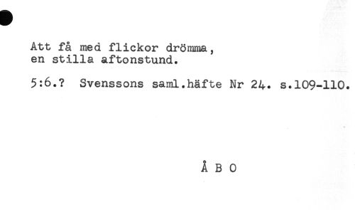 //// Att få med flickor drömma, //// en stilla aftonstund. //// 5:6.? Svenssons saml.häfte Nr 24. s.109-110. ////