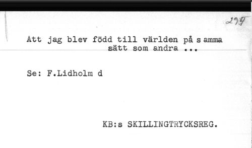 //// ^f i //// t ^ j //// Att jag blev född till världen på s amma //// -sätt som andra . *.- } //// '-'A! //// ) //// i //// Se: F.Lidholm d //// ! //// t //// { //// * < //// i //// KB:s SKILLINGTRYCKSREG. //// < ////