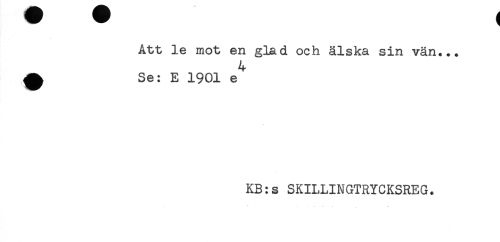 //// Att le mot en glad och älska sin vän... //// 4 //// ^ Se: E 1901 e //// KB:s SKILLINGTRYCKSREG. ////