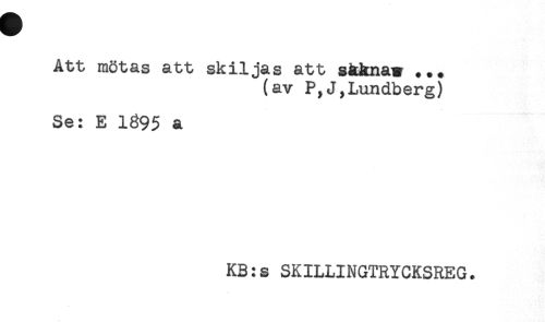//// Att mötas att skiljas att såhnaw ... //// (av P,J,Lundberg) //// Se: E 1895 a //// KB:s SKILLINGTRYCKSREG. ////