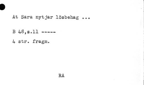 //// Åt Sara nytjar lösbehag ... //// t //// < //// B 43,s.ll ----- //// 4 str. fragm. //// t //// i //// ! //// i //// ! //// < //// f //// f //// < //// * //// ) //// t //// RA //// ) ////