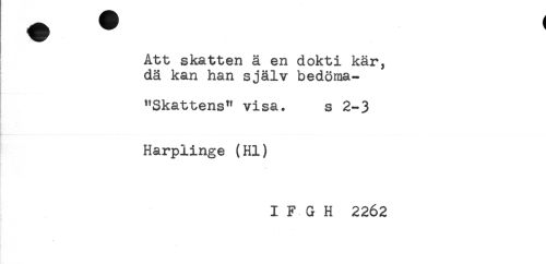 //// Att skatten ä en dokti kär, //// dä kan han själv bedöma- //// "Skattens" visa. s 2-3 //// - //// Harplinge (Hl) //// I F G H 2262 ////