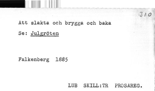 //// Att slakta och brygga och baka //// Se: Julgröten //// Falkenberg 1885 //// ) //// < //// < //// t //// LUB SKILL:TR PROSAREG. ! ////