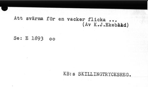 //// Att svärma för en vacker flicka ... //// (Av K.J.Ekebååd) //// Se: E 1893 oo //// KB:s SKILLINGTRYCKSREG. ////