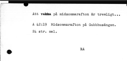 //// j Att vahha på midsommarafton är trevligt... //// I //// I A 42:19 Midsommarafton på Gubbhusängen. //// ! //// ; //// 24 str. mel. //// & .... //// I ^ RA ////