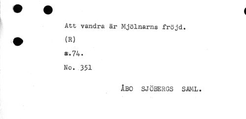 //// ^ 1 //// Att vandra är Mjölnarns fröjd. //// SL. 74. //// No. 351 //// ÅBO SJÖBERGS SAML. ////
