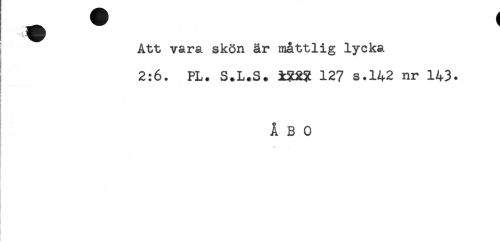 //// ^ Att vara skön år måttlig lycka //// 2:6. PL. S.L.S. 127 s.142 nr 143. //// t //// t //// ' //// . //// ÅBO //// y < //// t ////