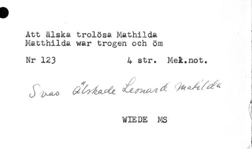 //// Att älska trolösa Mathilda ! //// Matthilda war trogen och öm //// Nr 123 4 str. Me^.not. //// ! //// j //// : t //// J ....... .^r,. ^^ ^ ^ //// WIE DE MS ////