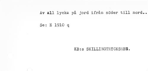 //// Av all lycka på jord ifrån söder till nord.. //// Se: E 1910 q //// KB:s SKILLINGTRYCKSREG. ////