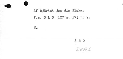 //// Af hjärtat jag dig älskar //// T.s. S L S 127 s. 173 nr 7. //// N. //// ÅBO //// - ////