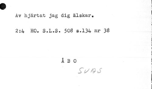 //// Av hjärtat jag dig älskar* //// i //// 2:4 HO. S.L.S. 508 s.134 nr 38 //// h //// H //// H //// E //// H //// ÅBO ! //// e //// H //// ^/PJ t //// - //// 5 ////