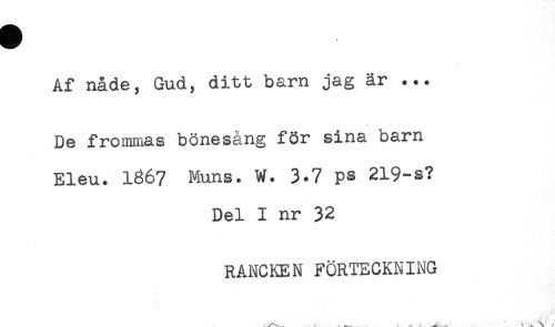 //// Af nåde, Gud, ditt barn jag är ... //// De frommas bönesång för sina barn //// Eleu. 1867 Muns. W. 3*7 ps 219-s? //// Del I nr 32 //// RANCKEN FÖRTECKNING ////