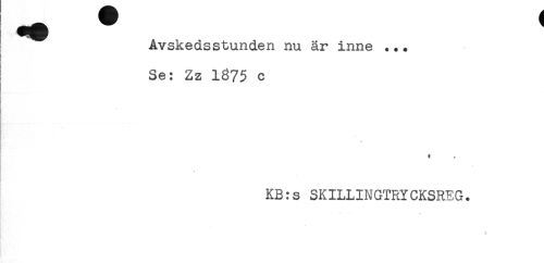 //// Avskedsstunden nu är inne ..* //// Se: Zz 1375 c //// * //// KB:s SKILLINGTRYCKSREG. //// t ////