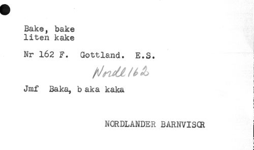 //// Bake, bake //// liten kake //// Nr 162 F. Gottland. E.S. //// ! //// t //// Jmf Baka, b aka kaka ! //// } //// . //// F //// ^ //// i //// NORDLANDER BARNVISCR //// k //// t //// H //// < ////