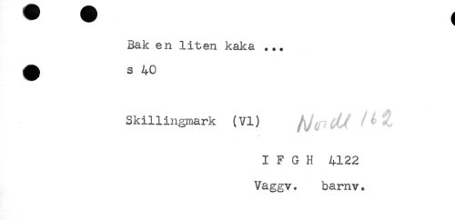 //// Bak en liten kaka ... //// Skillingmark (VI) //// I F G H 4122 //// Vaggv. barnv. ////