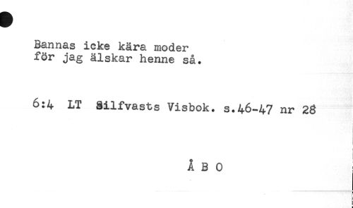 //// Bannas icke kära moder //// för jag älskar henne så. //// 6:4 LT gilfvasts Visbok, s.46-47 nr 28 //// ! //// i //// ÅBO //// [ //// h //// E //// i ////