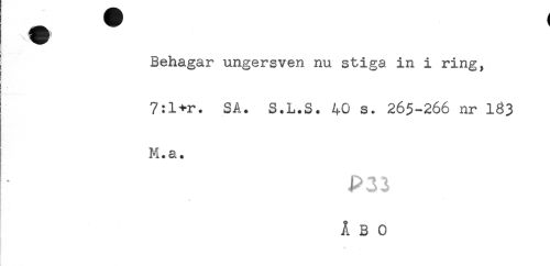 //// Behagar ungersven nu stiga in i ring, //// ! //// 7:l^-r. SA. S.L.S. 40 s. 265-266 nr 133 //// M.a. //// P33 ////