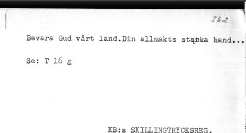 //// j ! //// Bevara Gud vårt land.Din allmakts stqi?ka hand..J //// Se: T 16 g //// . //// i //// i //// < //// } //// i //// KB:s SKILLINGTRYCKSREG. ////